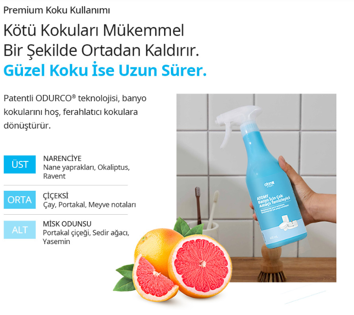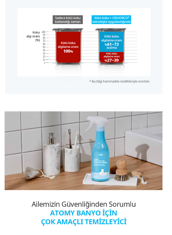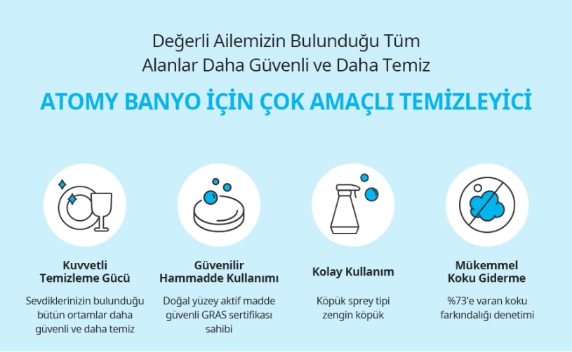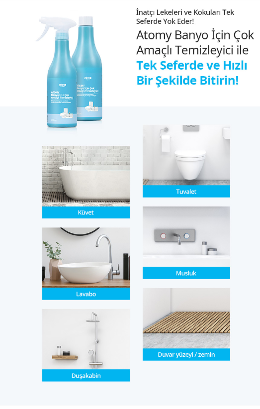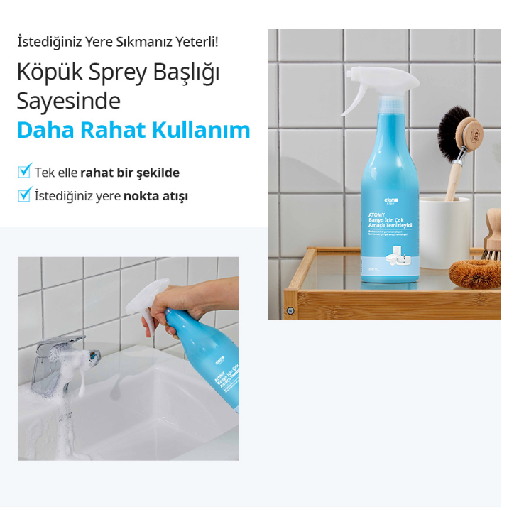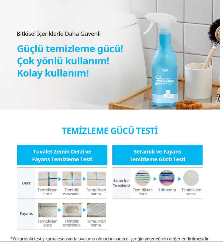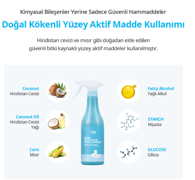 Bitkisel içerikli Atomy banyo temizleyici ile hem güçlü hem güvenli temizlik elinizin altında.