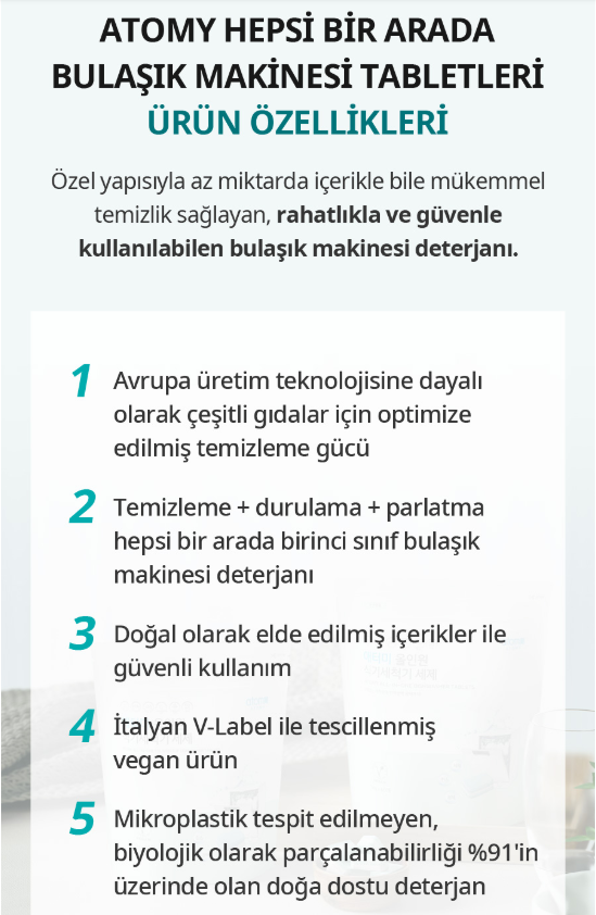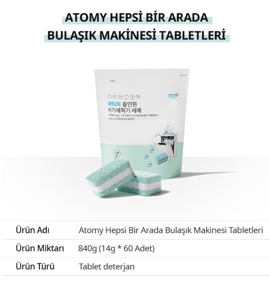 Atomy Hepsi Bir Arada Bulaşık Makinesi Tabletleri ile bulaşıklarınız artık pırıl pırıl, doğa ise güvende!
