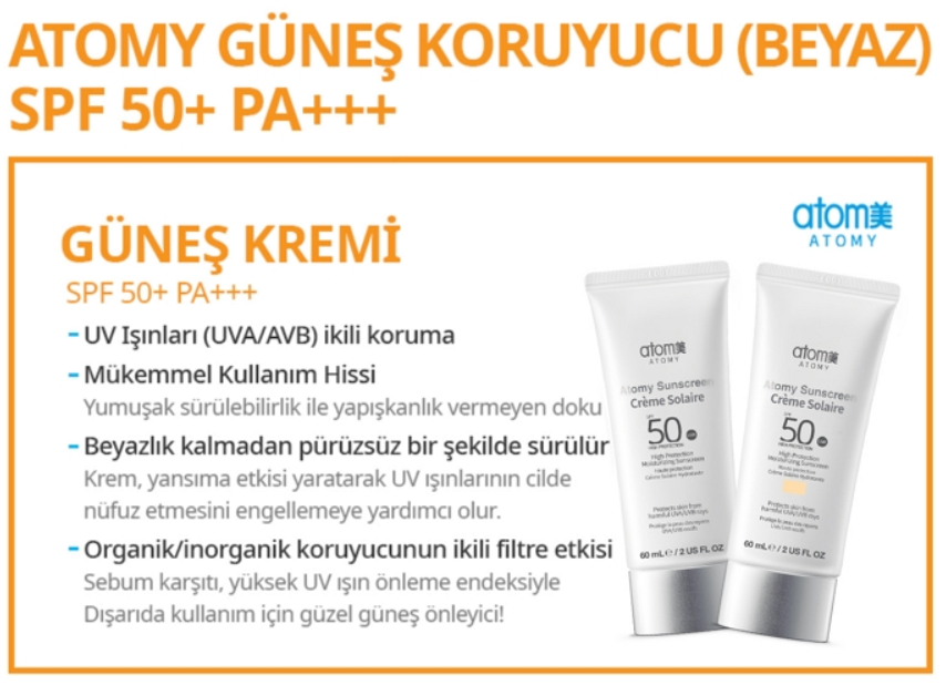 Sunscreen SPF50+ PA+++ güneş koruyucu krem, geniş spektrumlu UV koruması sunarak cildinizi hem UVA hem de UVB ışınlarına karşı yüksek seviyede korur. SPF50+ faktörü, ciltteki zararlı güneş ışınlarının %98'ini engeller, PA+++ ise uzun süreli UVA ışınlarından korunmayı sağlar.