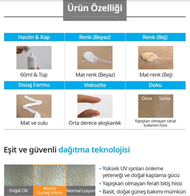 UV Filtreleri (SPF50+ ve PA+++): Yüksek koruma sağlayarak cildin güneşin zararlı etkilerinden korunmasını sağlar.
